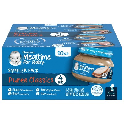 . Up to 5 cash back Gerber stage 2 baby food recipes help expose babies to a variety of tastes and ingredients to help them accept new flavors Ingredients Water Sweet Potatoes. Gerber Baby Food 2nd Foods Blends Banana Mixed Berry Puree Wonderfoods Natural Non-GMO 4 Ounce Tubs 2-Pack Pack of 8 4 Ounce Pack of 16 48 out of 5 stars 849. Gerber 3rd Foods Turkey Dinner baby food is an age-appropriate puree that introduces your little one to classic flavors.
